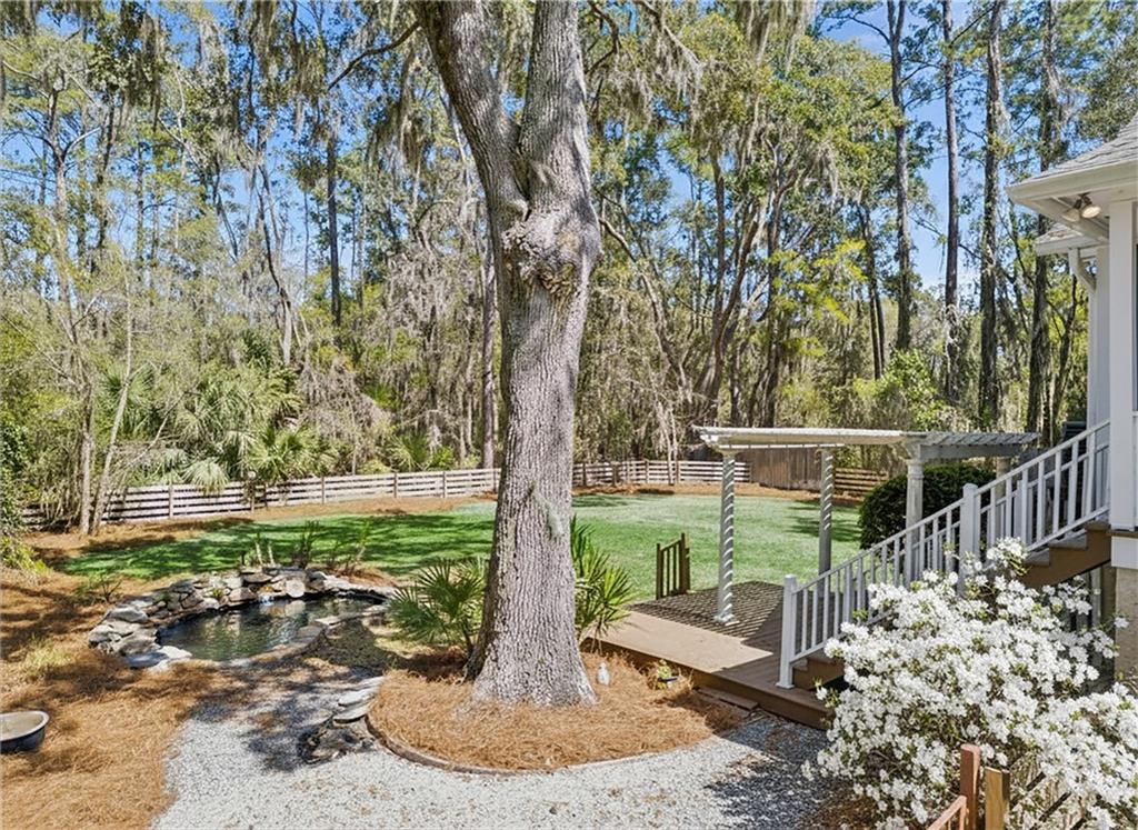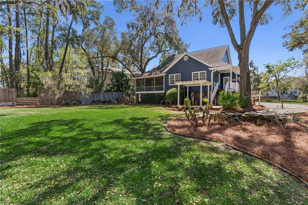 Step outside to discover an expansive, flat, and fully fenced backyard--an increasingly rare offering on the island. With ample room for a pool, guest house, or future expansion, the possibilities are endless. A peaceful, man-made pond enhances the natural beauty of the setting, while multiple outdoor living areas--including two screened porches--invite year-round enjoyment. The private screened porch off the primary suite provides a quiet retreat overlooking the backyard.
