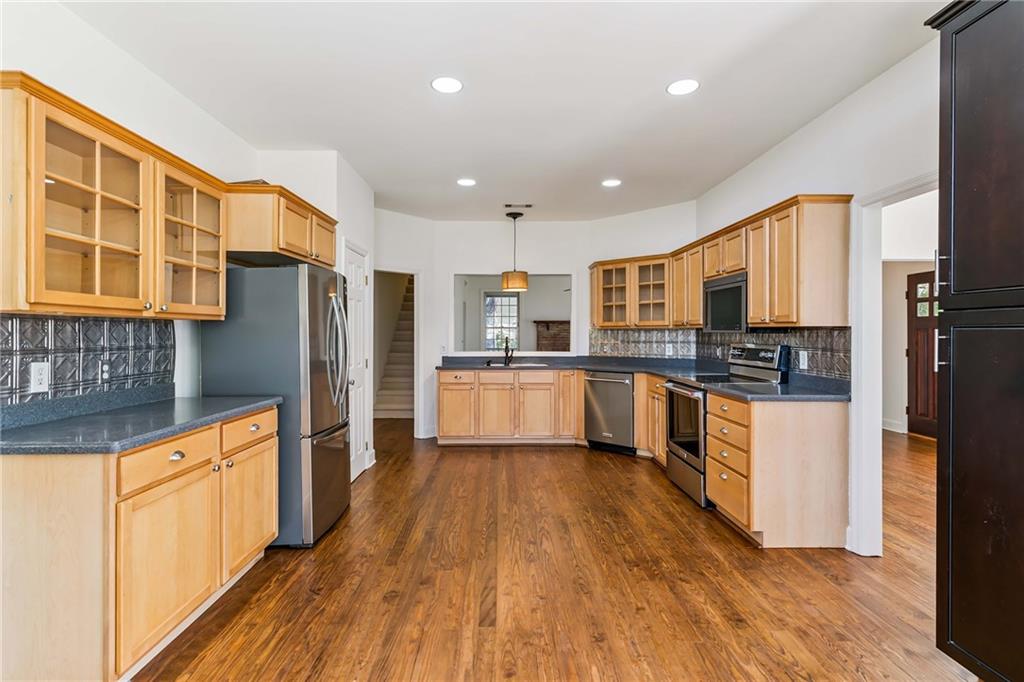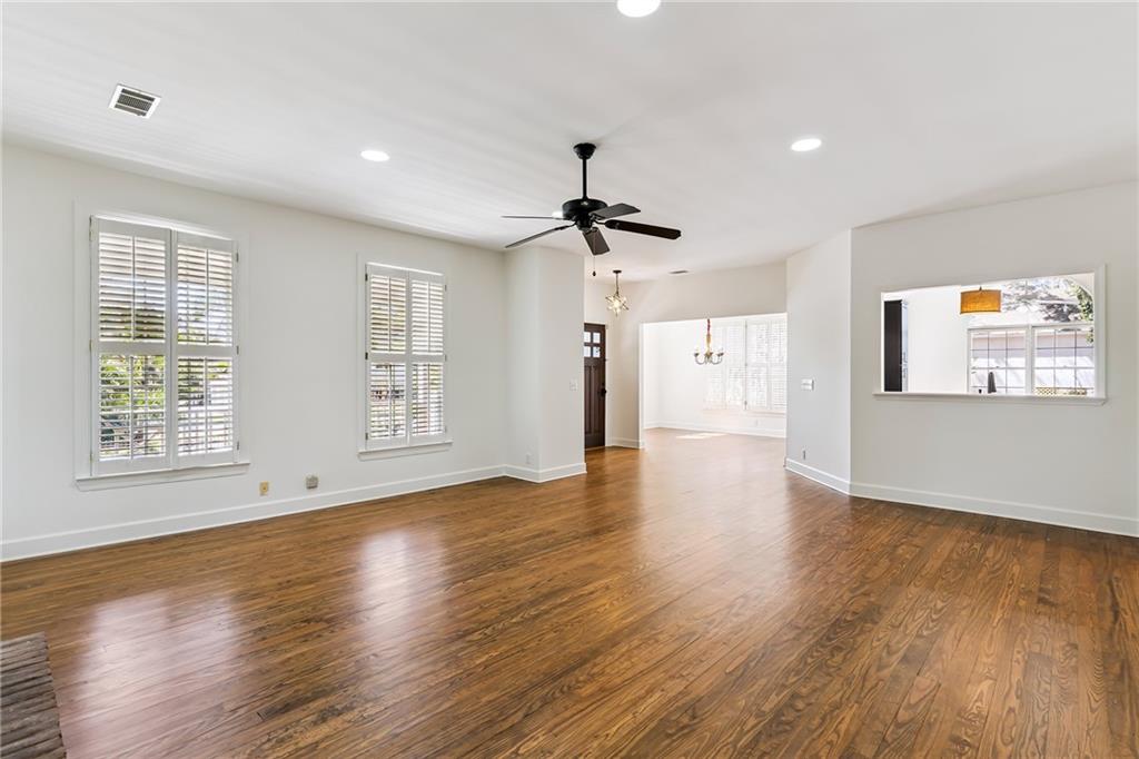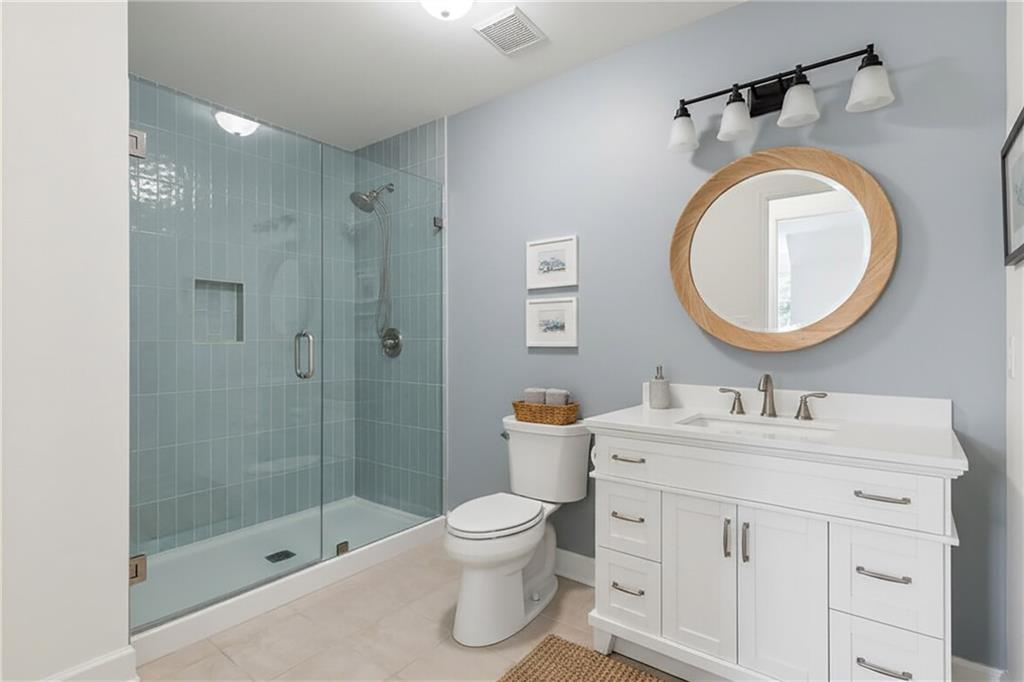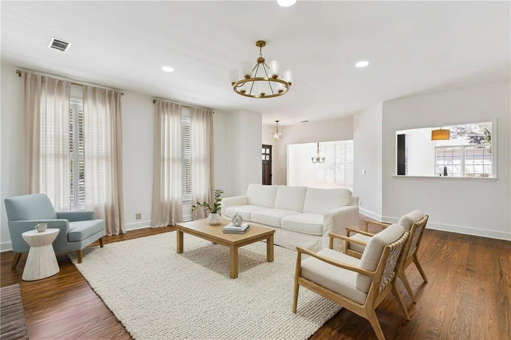 This 4-bedroom, 3-bath residence spans just over 2,800 square feet and is thoughtfully designed for both relaxed living and effortless entertaining. A welcoming rocking chair front porch overlooks the manicured front garden, while inside, sunlit interiors feature freshly refinished hardwood floors, brand new carpeting, and crisp, neutral finishes throughout.