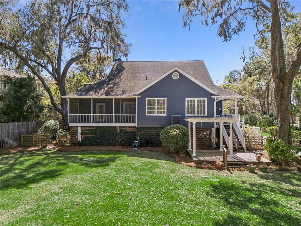 Tucked away on the coveted north end of Saint Simons Island near historic Fort Frederica, this private coastal retreat offers an exceptional blend of charm, space, and opportunity. Set on over half an acre, the property is enveloped by mature oaks and lush landscaping, creating a serene setting with tranquil pocket marsh views.
