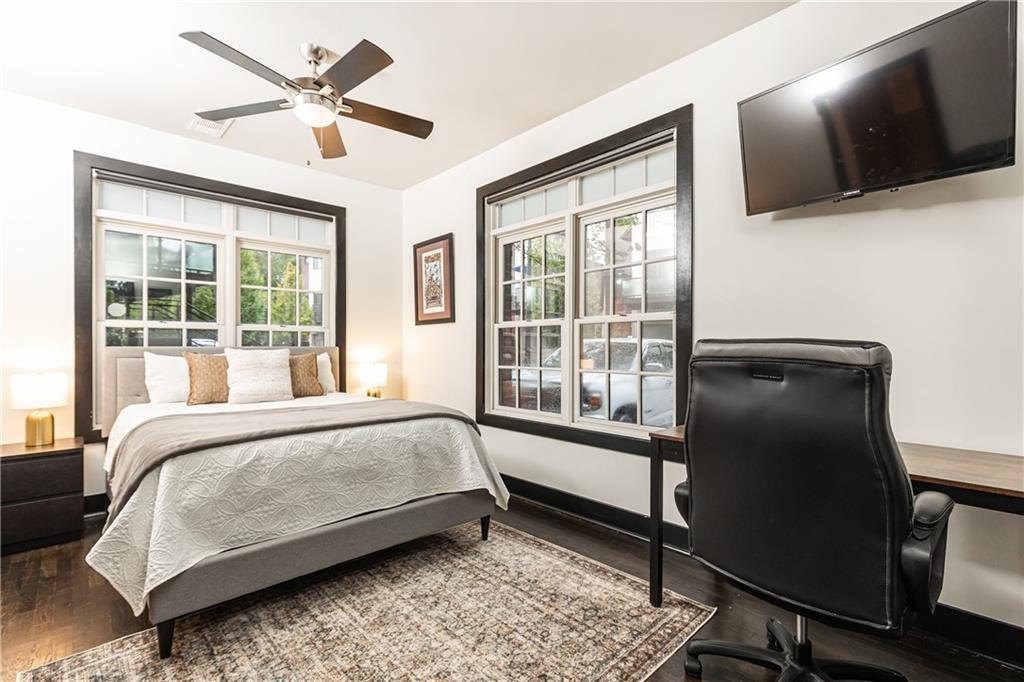 The owner's suite offers a peaceful retreat with a spa-like bathroom featuring a dual vanity and soaking tub/shower. Enjoy the convenience of private in-unit laundry and dedicated parking, with additional spots available for guests. Tucked away off the main street and just minutes from Inman Park, Krog Street Market, The BeltLine, locally owned Fox Bros. BBQ, and only two blocks from MARTA for a quick commute to Hartsfield-Jackson International Airport. This condo perfectly blends urban excitement with a peaceful escape!
