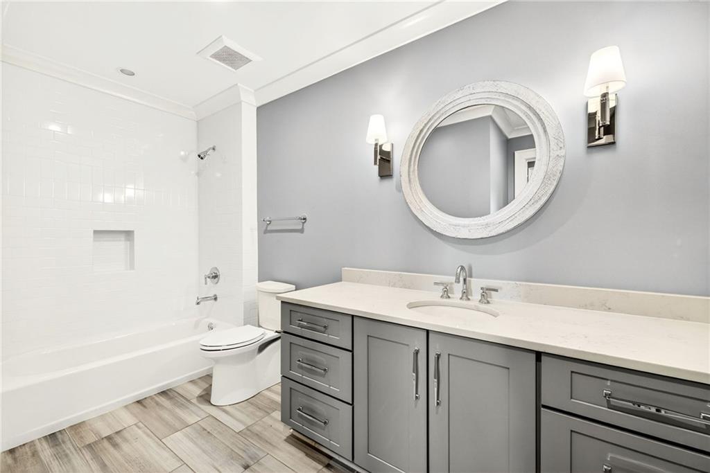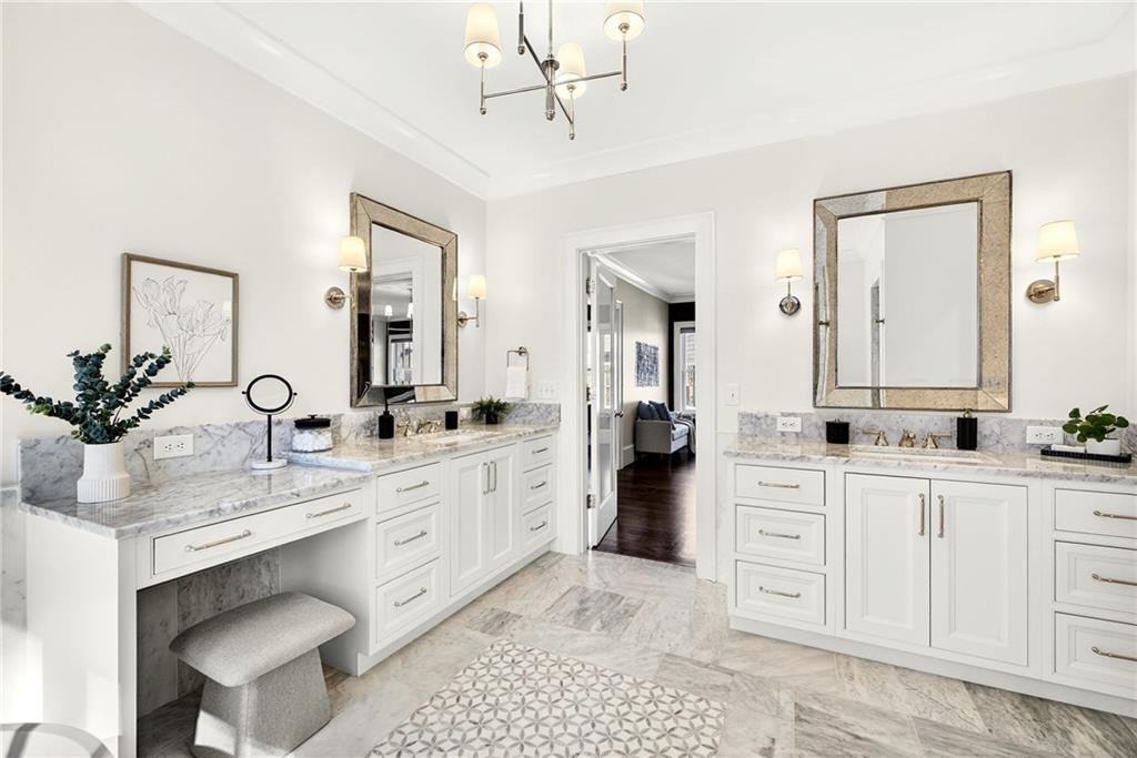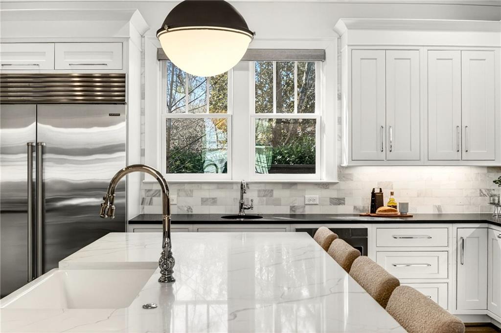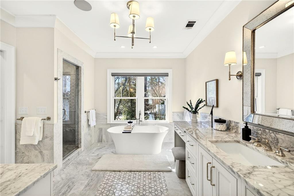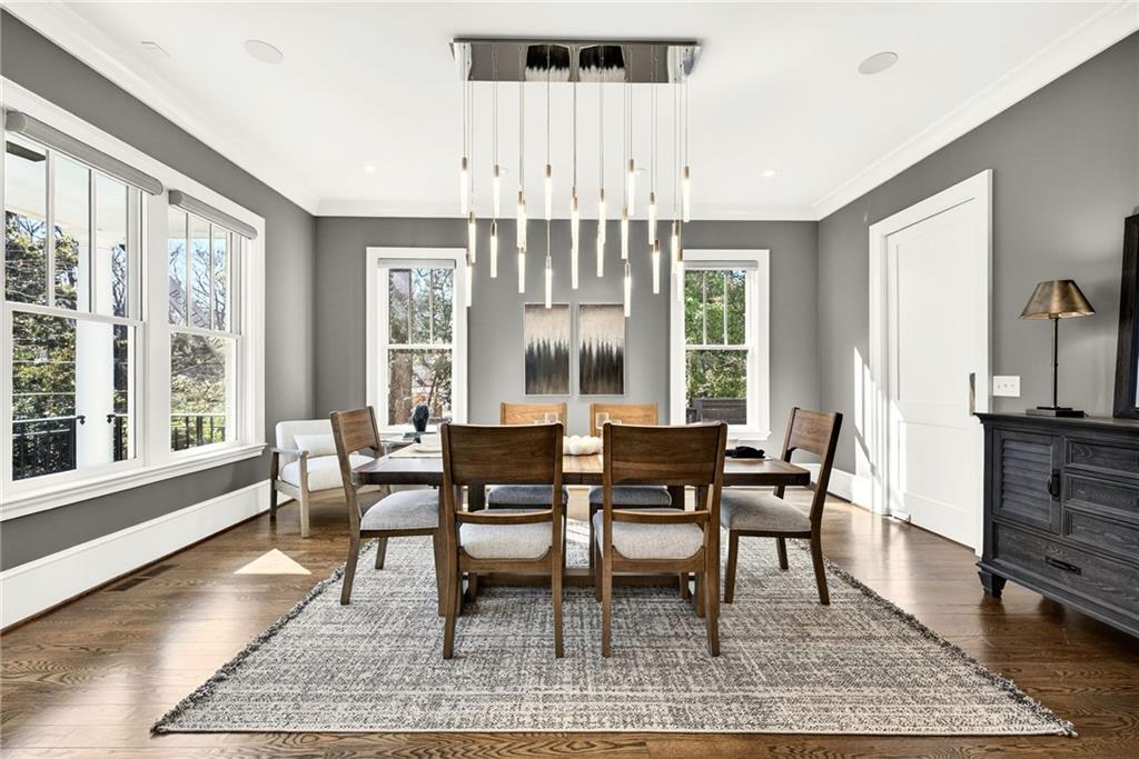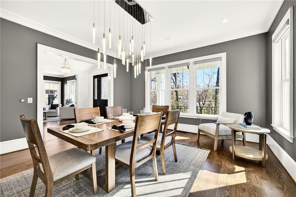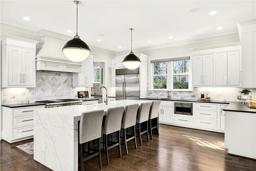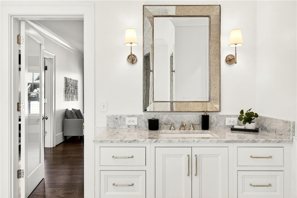 This exceptional residence blends timeless elegance with modern luxury. Built in 2021, this home features light-filled interiors, white oak hardwoods, and high-end finishes throughout. The grand entry leads to a sophisticated sitting room with a gas/wood-burning fireplace, a formal dining room, and a butler's pantry with a walk-in storage area. The chef's kitchen impresses with a 48" Wolf range, pre-cast limestone hood, Sub-Zero refrigerator, and a stunning quartz island--flowing seamlessly into the breakfast area and fireside family room. Upstairs, the luxurious primary suite boasts a spacious sitting area, two walk-in closets, and a spa-inspired bath with a soaking tub and marble steam shower. Three additional en-suite bedrooms offer custom tile baths and walk-in closets. The terrace level includes a private bedroom with a full bath and media room. French doors open to an expansive covered porch, perfect for outdoor entertaining, overlooking a beautifully landscaped yard with room for a pool. A two-car attached garage and additional alley parking provide convenience. Just steps from Midtown, Piedmont Park, the BeltLine, and more!