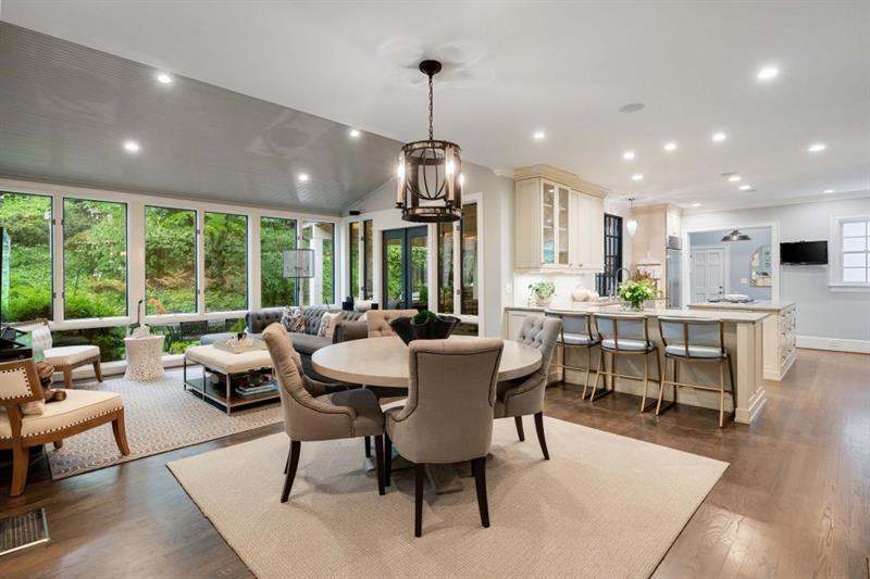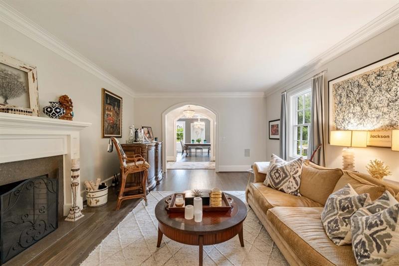 Welcome to 221 Robin Hood-where privacy, scale, and timeless design converge in one of Midtown's most coveted neighborhoods. Set atop a hill on nearly a full acre-the largest lot in Sherwood Forest-this reimagined residence offers a rare combination of seclusion and sophistication in the heart of the city. Surrounded by mature landscaping and thoughtfully hardscaped grounds, the property is an oasis of calm where greenery frames every view and no neighboring windows peer in. Inside, classic architectural symmetry welcomes you with an elegant dining room to your right and a gracious living room to your left, setting the tone for refined living and effortless entertaining. At the heart of the home, the chef's kitchen opens to a sun-drenched family room with floor-to-ceiling windows that bring the serene outdoors in. The main-level primary suite is a true retreat, featuring bay windows that overlook the lush backyard, a spa-like bath, and an expansive his-and-hers closet with direct access to the laundry room. Upstairs, three spacious bedrooms and a large bonus room offer flexibility for family, work, or guests. Step outside to the crown jewel of the home: a spectacular four-season patio complete with a fireplace, built-in grill, dining area, and room to entertain on any scale. This is more than a beautiful home-it's an extraordinary opportunity to own one of Midtown's only acre-sized parcels. A seamless blend of setting, style, and soul-all just minutes from Atlanta's best restaurants, shopping, and cultural destinations.