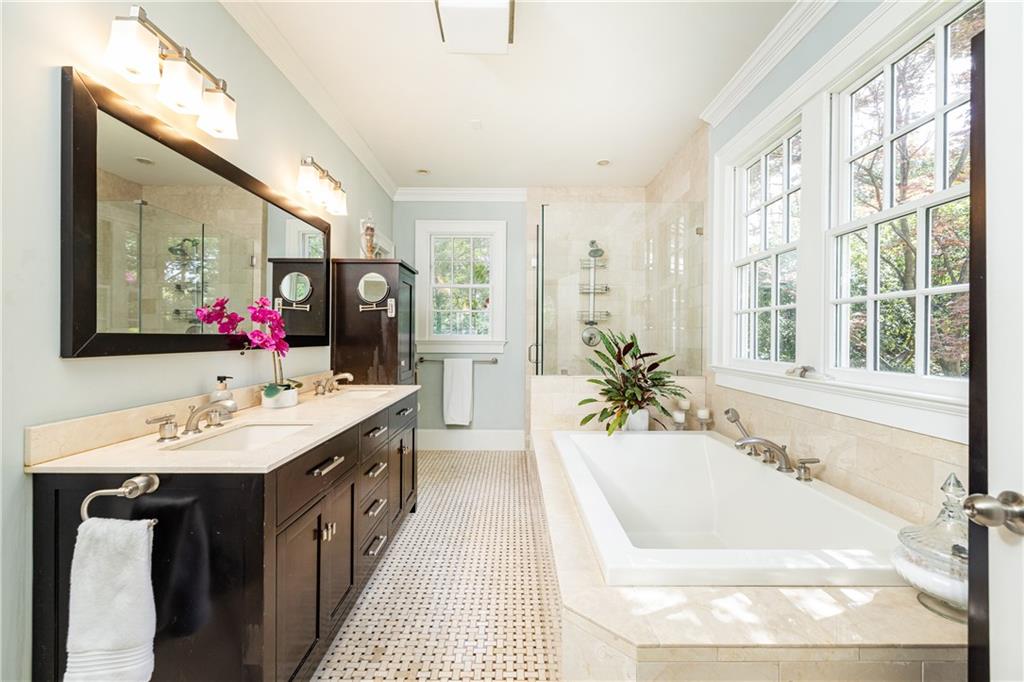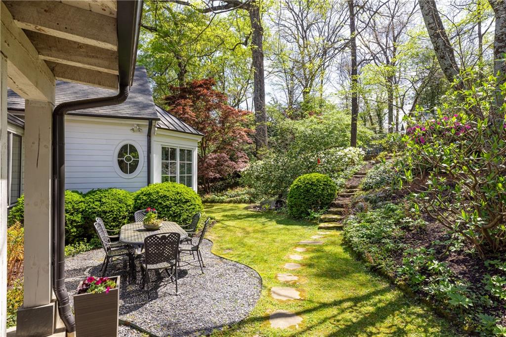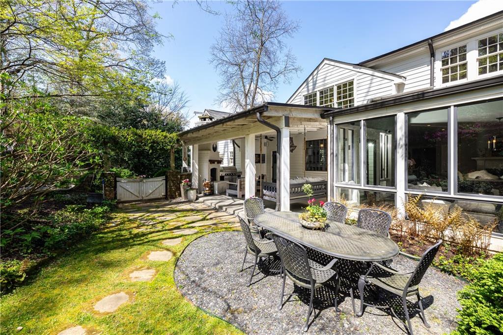 Welcome to 221 Robin Hood an opportunity to own one of Midtown's most rare and irreplaceable properties. Set on nearly a full acre the largest lot in Sherwood Forest this private, elevated setting offers a level of space, seclusion, and natural beauty that simply cannot be recreated this close to the heart of the city. Surrounded by mature landscaping and extensive hardscaping, the property lives like a hidden garden retreat, where every view is green and private, with no neighboring windows in sight. Inside, the home blends timeless architecture with comfortable, move-in-ready living. A classic, symmetrical layout creates both flow and flexibility, with formal living and dining spaces complemented by a light-filled family room that opens directly to the outdoors. The kitchen anchors the home with easy connection to everyday living and entertaining, while floor-to-ceiling windows bring the landscape in. The main-level primary suite offers a true sense of retreat, with bay windows overlooking the grounds, a spacious bath, and generous closet space with direct access to the laundry room. Upstairs, three additional bedrooms and a large bonus room provide flexibility for family, guests, or work-from-home needs. The outdoor living experience is exceptional. A covered, four-season patio with fireplace, built-in grill, and dining area extends the home into the landscape creating a setting that is equally suited for quiet mornings or large-scale gatherings. What sets this property apart is the land. In a market where homes can be updated over time, a nearly one-acre, private lot in Midtown is a truly limited and enduring asset offering both immediate enjoyment and long-term value that cannot be duplicated. Located just minutes from Atlanta's best dining, shopping, and cultural destinations, 221 Robin Hood offers a rare combination of privacy, scale, and proximity delivering a Midtown living experience that is increasingly hard to find.