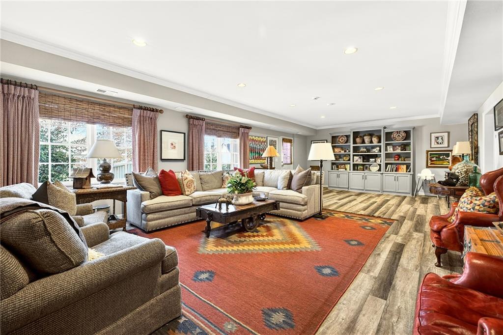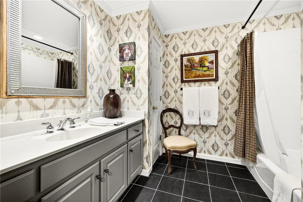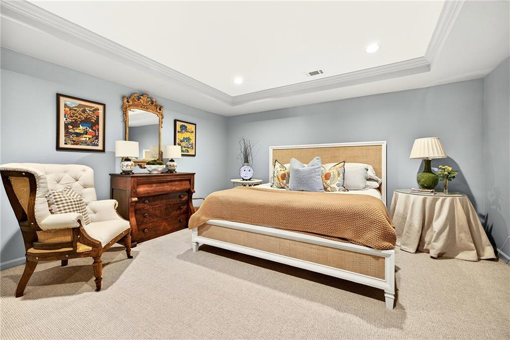 Upstairs, you'll find four spacious bedrooms, three with en suite bathrooms, along with a convenient laundry room and generous attic storage for all your belongings. The primary suite is a true retreat, featuring double vanities, an oversized shower, and room for a luxurious soaking tub. The terrace level is an entertainer's dream with plenty of space for game day gatherings, a comfortable bedroom, full bathroom, and a state-of-the-art wine cellar with impressive bottle capacity.