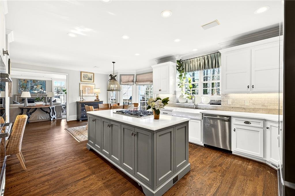 The heart of the home features a chef's kitchen outfitted with updated appliances, abundant counter space, and a welcoming mudroom. The kitchen connects seamlessly to the expansive family room. Step outside to the expansive covered back porch, where you'll enjoy views of a meticulously maintained, lush green lawn that remains beautiful in every season. This well-cared-for home has been thoughtfully maintained to provide years of comfortable living.