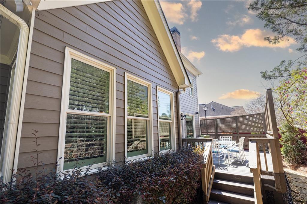 Where comfort meets convenience, this beautiful home is tucked inside one of Vinings' most desirable gated communities. A two-story foyer welcomes you in and sets the tone for the space throughout. The main level is designed for both everyday living and entertaining, with a well-appointed kitchen, sunny breakfast area, and a spacious family room with custom built-ins. Just off the living area, a back deck overlooks a private, fenced backyard, creating an easy indoor-outdoor flow. Upstairs, all three bedrooms have their own en suite baths. The primary suite feels like a retreat, complete with a fireplace, sitting area, and an updated bath. The terrace level adds flexibility with a two-car garage, an additional bedroom and bathroom, and plenty of storage. There is also space in place for a future elevator if desired.The location is a major highlight. You are just moments from Vinings Jubilee, The Battery, Truist Park and the growing Cumberland office district, making it incredibly convenient for both work and play. With quick access to Midtown and the airport, plus low Cobb County taxes and proximity to highly regarded private schools, this is an ideal spot for many lifestyles.