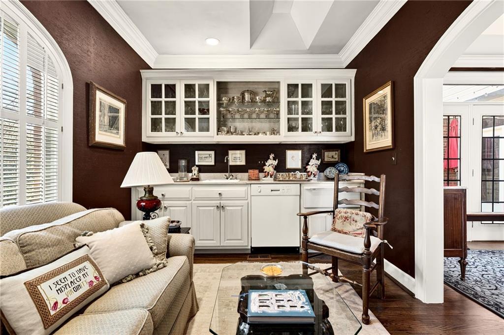 A sun-filled foyer welcomes you inside and flows effortlessly into the expanded chef's kitchen, featuring a like-new refurbished Sub-Zero and Dacor appliances, now fully open to the breakfast area and main living space. The living room is warm and inviting, complete with custom built-ins, a gas fireplace, and French doors that open to an outdoor terrace. A formal dining room with a walk-in china closet connects seamlessly to both the deck and the home's signature "Champagne Room," outfitted with a wet bar, refrigerator, and warming drawer--an ideal layout for hosting with ease.
