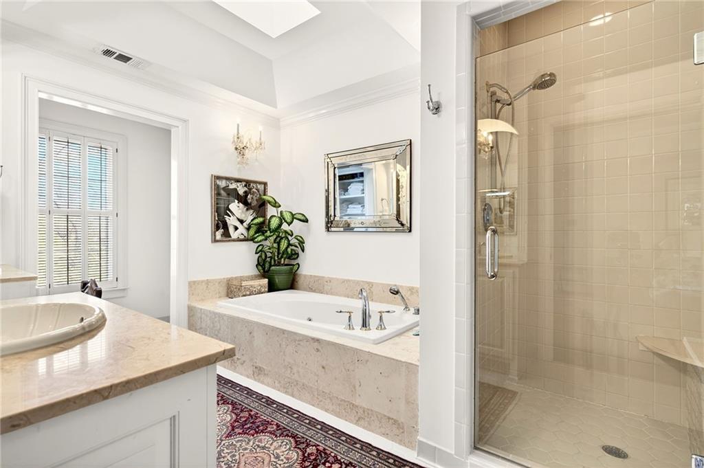Additional highlights include exceptional storage throughout, brand new bathroom on terrace level, a custom linen-hanging closet, and a two-car garage with built-in cabinetry and easy access to the elevator. The Gables on Peachtree is a boutique community of just 20 residences, offering two gated entrances from Peachtree Road and Cantrell Road for privacy and security.