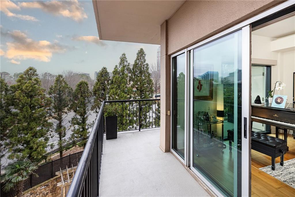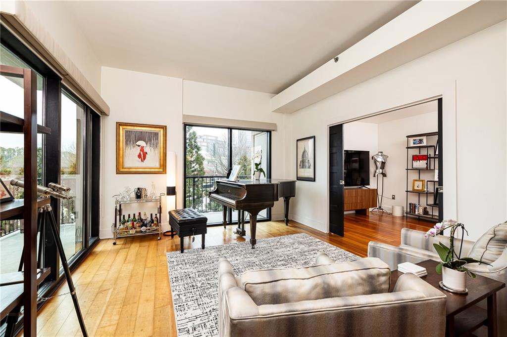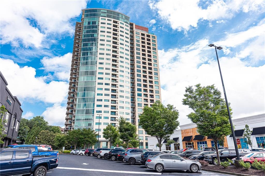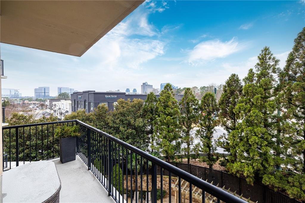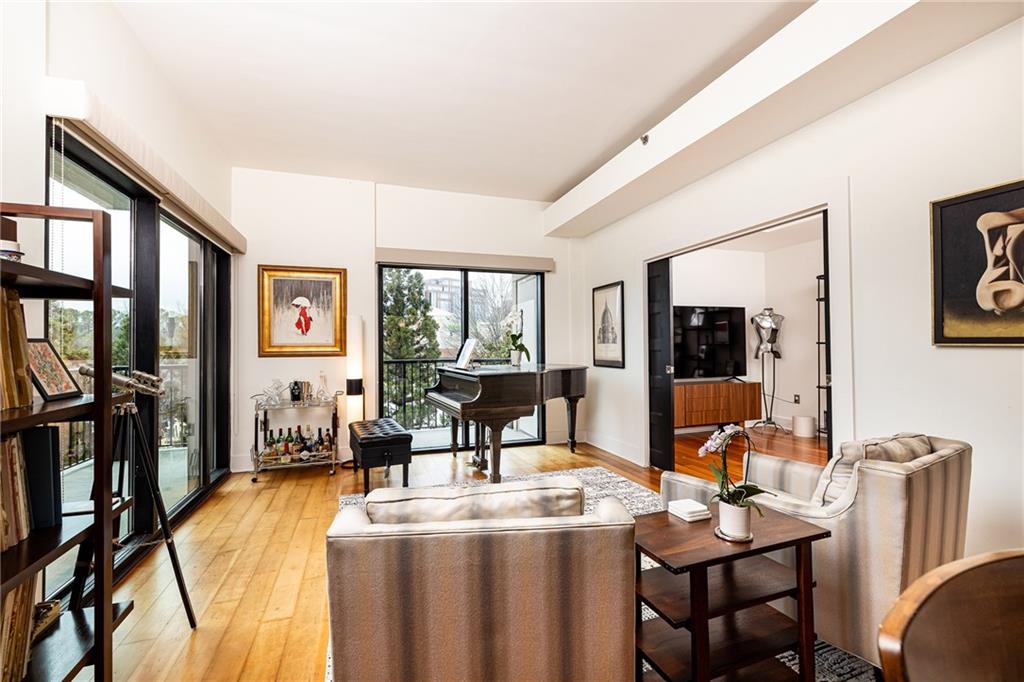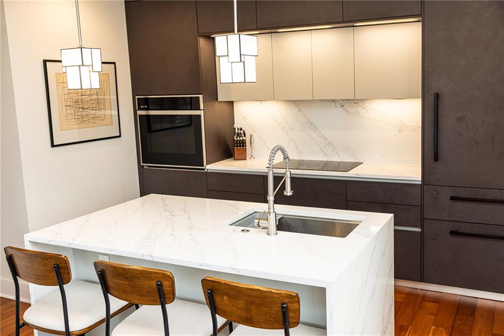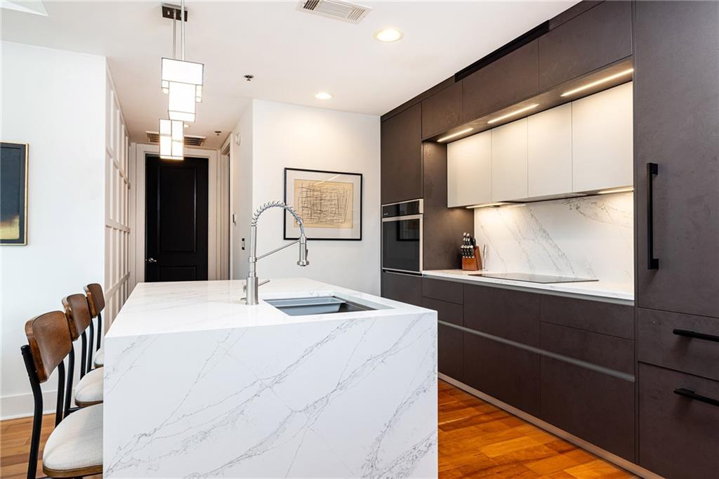 Welcome to The Manhattan -- soaring on the edge of Perimeter Center in the heart of Dunwoody. This stylish one-bedroom, one-bath condo offers sophisticated, turnkey living in one of the neighborhood's most luxurious buildings. The spacious living area includes room for a piano and a flexible bonus room currently used as a den -- perfect as a home office or guest quarters. The stunning kitchen, designed and installed by ADAC-based Pedini Atlanta in 2025, showcases sleek Italian cabinetry, an electric induction cooktop, and Bosch and Thermador appliances. A wrap-around terrace-balcony extends the
