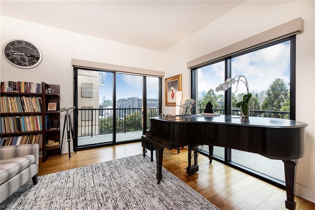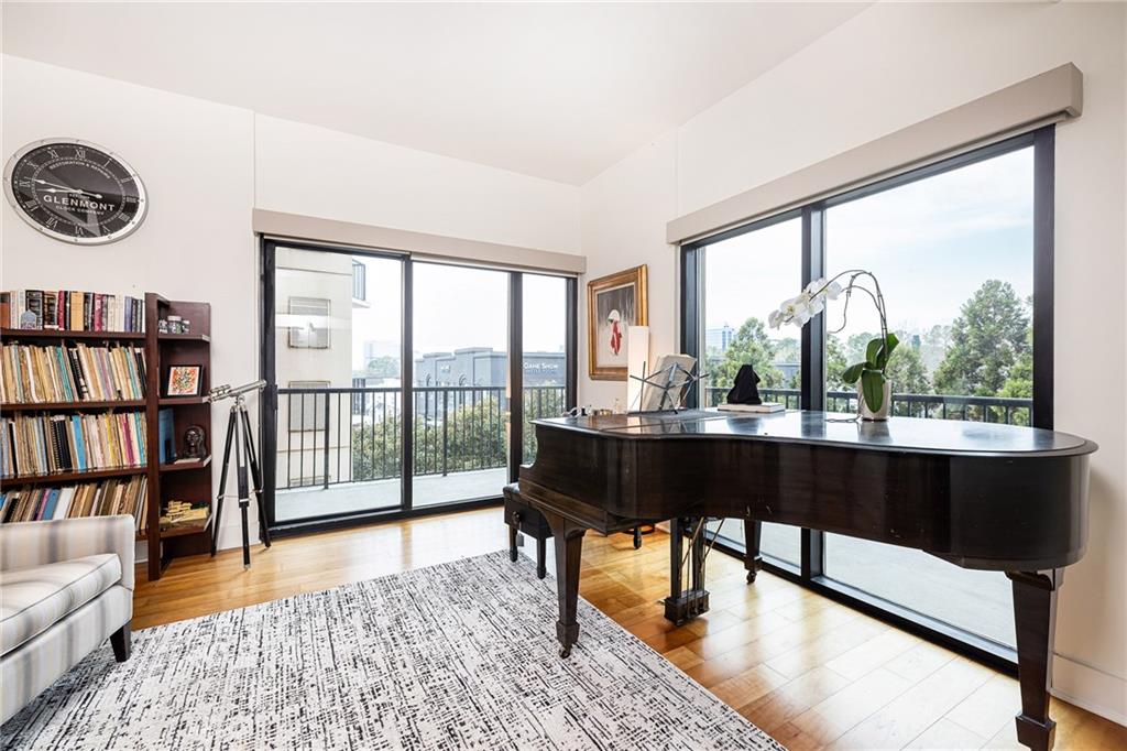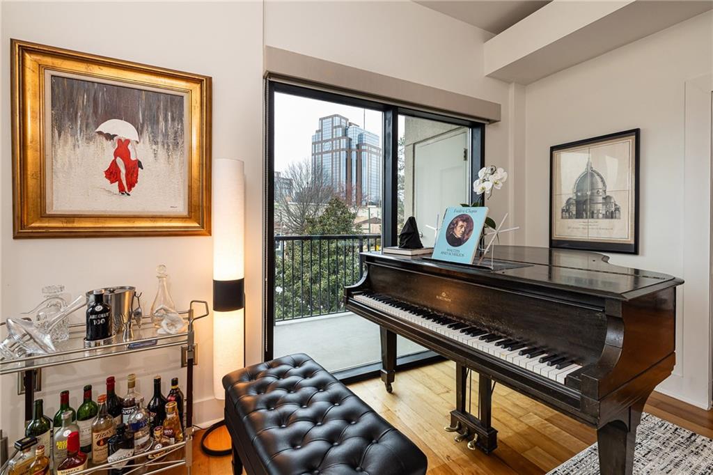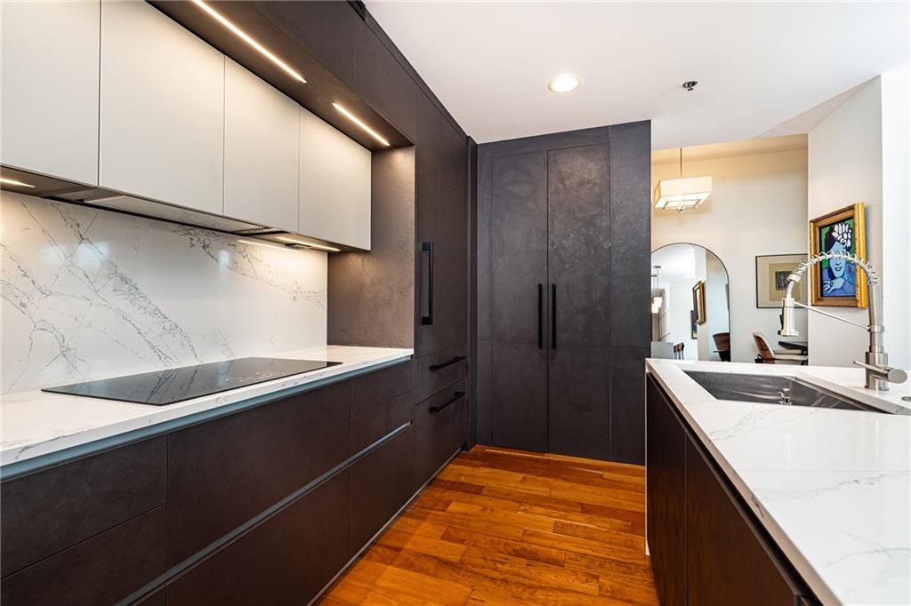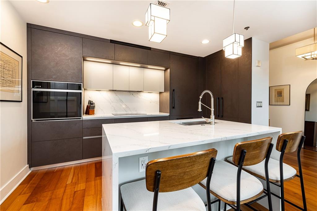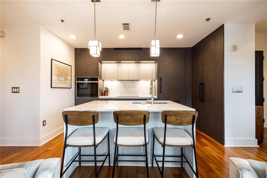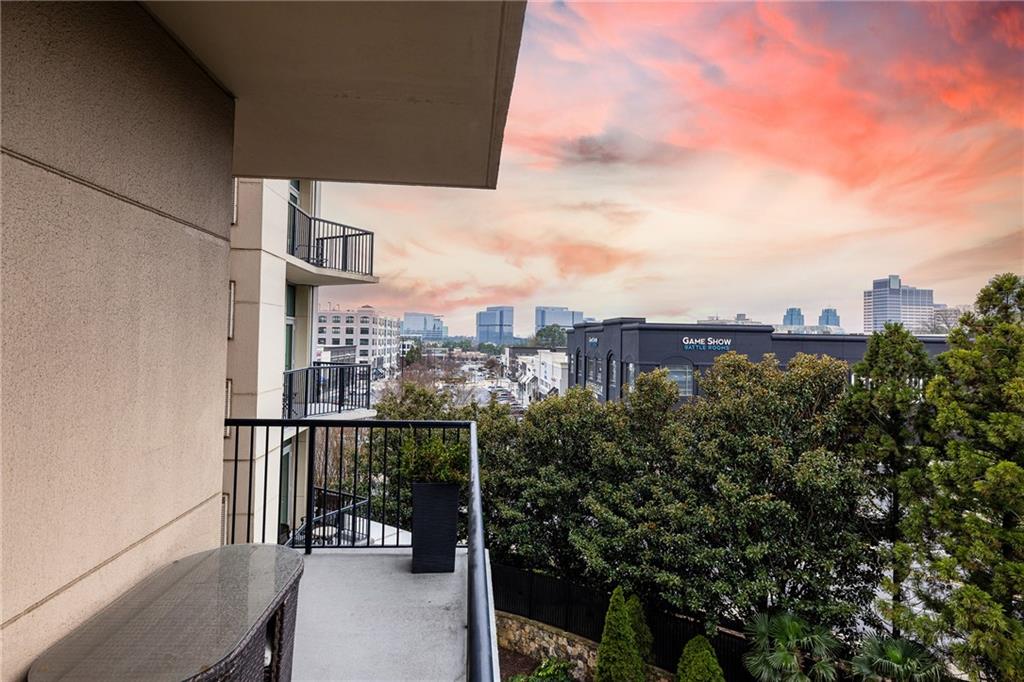 Welcome to The Manhattan -- soaring on the edge of Perimeter Center in the heart of Dunwoody. This stylish one-bedroom, one-bath condo offers sophisticated, turnkey living in one of the neighborhood's most luxurious buildings. The spacious living area includes room for a piano and a flexible bonus room currently used as a den -- perfect as a home office or guest quarters. The stunning kitchen, designed and installed by ADAC-based Pedini Atlanta in 2025, showcases sleek Italian cabinetry, an electric induction cooktop, and Bosch and Thermador appliances. A wrap-around terrace-balcony extends the