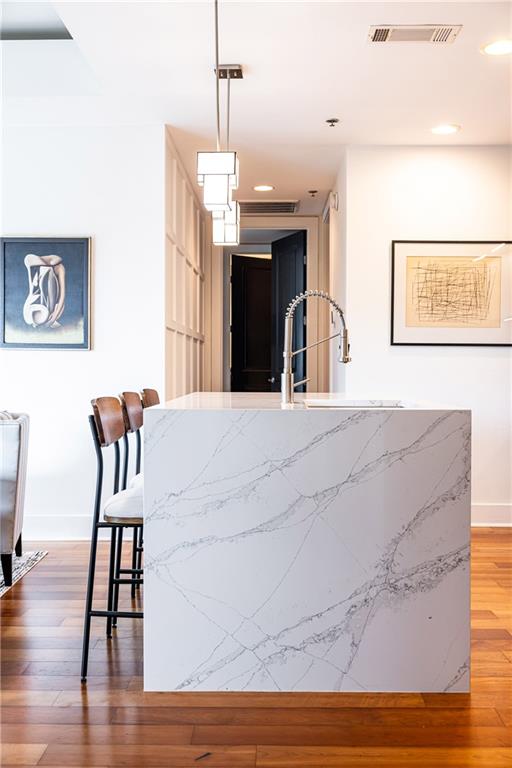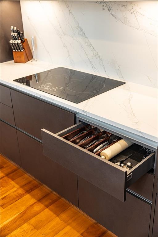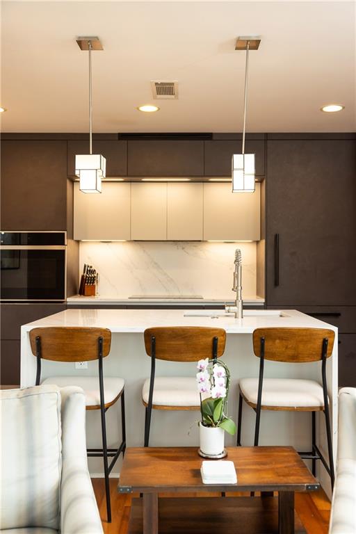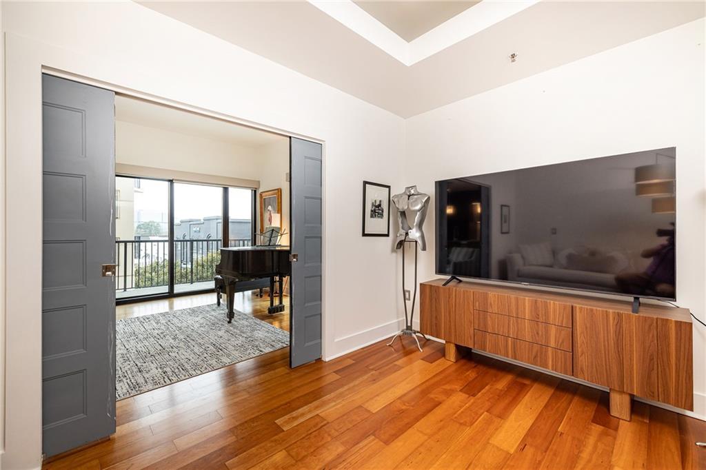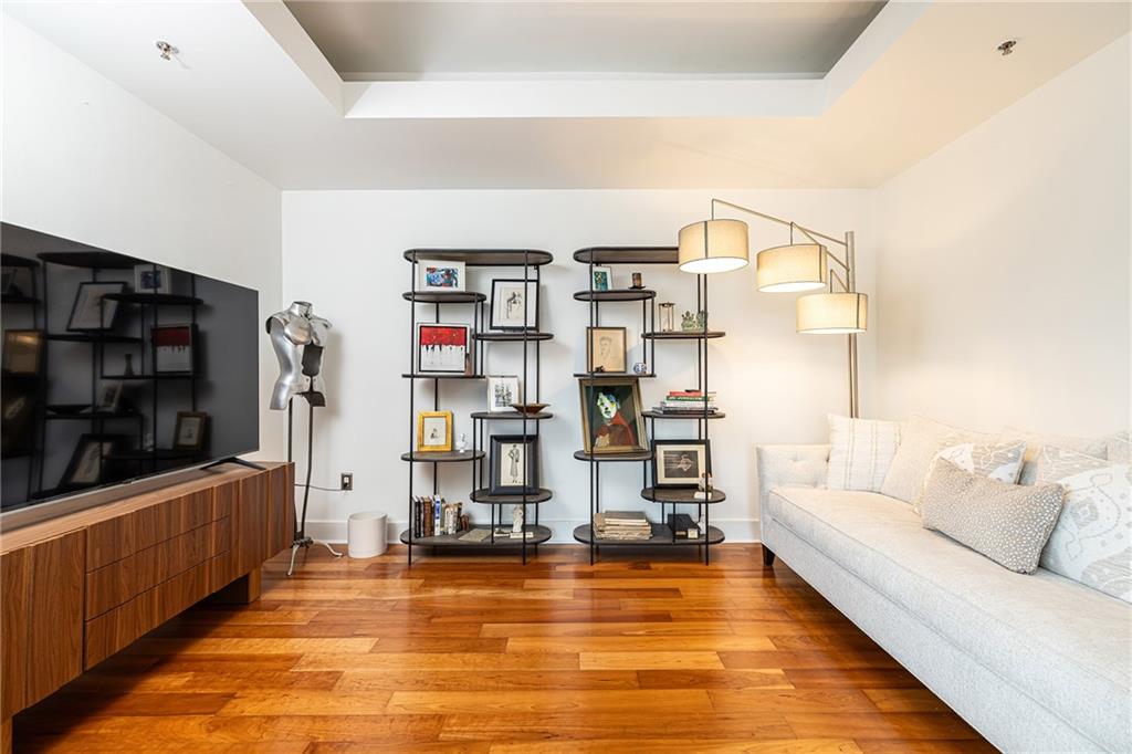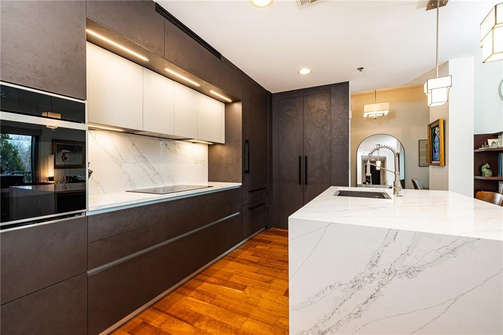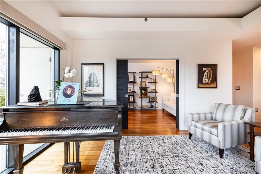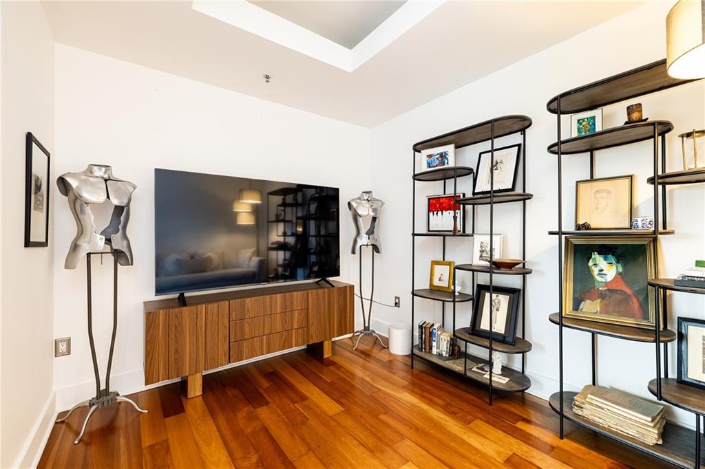 Welcome to The Manhattan -- soaring on the edge of Perimeter Center in the heart of Dunwoody. This stylish one-bedroom, one-bath condo offers sophisticated, turnkey living in one of the neighborhood's most luxurious buildings. The spacious living area includes room for a piano and a flexible bonus room currently used as a den -- perfect as a home office or guest quarters. The stunning kitchen, designed and installed by ADAC-based Pedini Atlanta in 2025, showcases sleek Italian cabinetry, an electric induction cooktop, and Bosch and Thermador appliances. A wrap-around terrace-balcony extends the